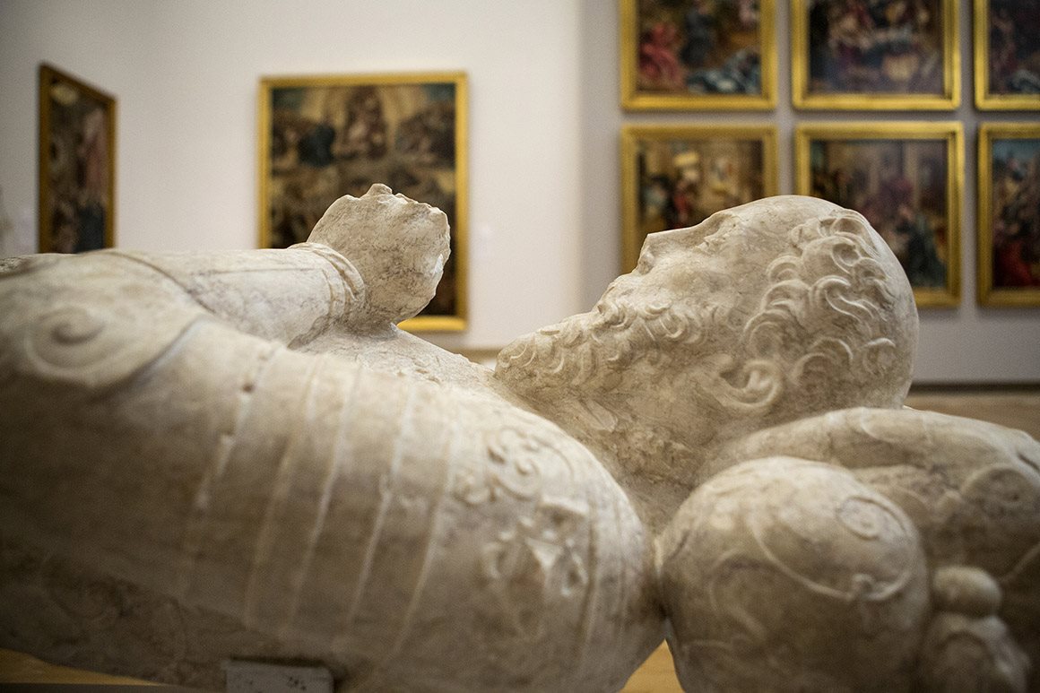 Pelo meio há um governador de Ormuz que sobreviveu ao terramoto de Lisboa emparedado (uma escultura do século XVI, de grande sofisticação, que representa D. Manuel de Lima e que terá saído de uma importante oficina de Coimbra), conta Vilhena, e duas salas consagradas a mulheres: uma em que se vêem apenas pinturas de Josefa d’Óbidos (1630-1684) e outra em que a protagonista é a rainha D. Leonor (1458-1525), mulher de D. João II e irmã de D. Manuel, ligada à fundação do Mosteiro da Madre de Deus, um centro da cultura da época, lê-se num pequeno texto de parede em que se fica também a saber que foi ela quem deu trabalho aos pintores Jorge Afonso e Cristóvão de Figueiredo, tendo comprado ainda obras de importantes artistas internacionais como o flamengo Quentin Metsys e os italianos Della Robbia.