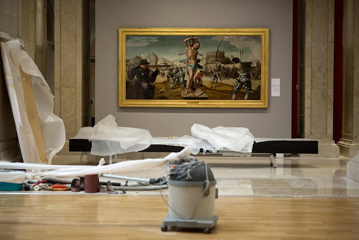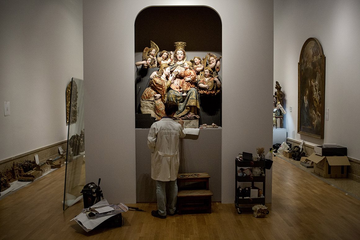 A dois dias da inauguração da nova galeria de pintura e escultura portuguesas, no Museu Nacional de Arte Antiga (MNAA), há ainda muito a fazer. Escadotes, paletes, cavaletes e empilhadores partilham o espaço com alguns exemplares do melhor que a colecção tem para oferecer. Há operários de um lado para o outro, conservadores a acompanhar a instalação das obras e técnicos de restauro a ocupar-se de uma escultura em barro do século XVII. Muitas peças estão ainda cobertas, mas já dá para ver que os novos espaços – 16 salas no terceiro piso, fechadas há oito anos e que são reabertas esta quinta-feira – serão luminosos e que nas paredes e plintos há “estreias” que valem a pena.