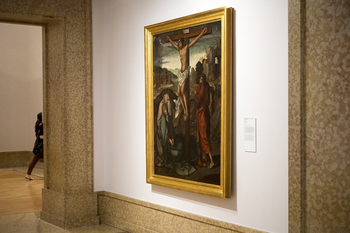 O percurso, que está organizado cronologicamente, começa com escultura porque, na colecção de Arte Antiga, ela é anterior à pintura (uma começa no século XIII, a outra só no XV), diz Maria João Vilhena, conservadora do museu. Mas, ao contrário do que se passava na anterior montagem, estão agora misturadas, estabelecendo um diálogo sempre que ele é possível e faz sentido, acrescenta o colega Joaquim Caetano, ao entrar numa pequena sala dominada por uma pintura de Francisco Henriques, um Pentecostes (c.1500-1518), em que podem ver-se também esculturas flamengas. “Este é um momento [século XVI] em que a pintura portuguesa muda muito por influência dos pintores flamengos que vêm trabalhar para Portugal. Juntar as duas coisas é natural”, explica o conservador de pintura, chamando a atenção, nas salas seguintes, para obras de Jorge Afonso e Gregório Lopes, para um retábulo do Mestre da Lourinhã e para o espaço inteiramente dedicado à produção de Frei Carlos (?-1540), um flamengo que professou no Espinheiro, em Évora, e que fundou neste mosteiro jerónimo a sua oficina.