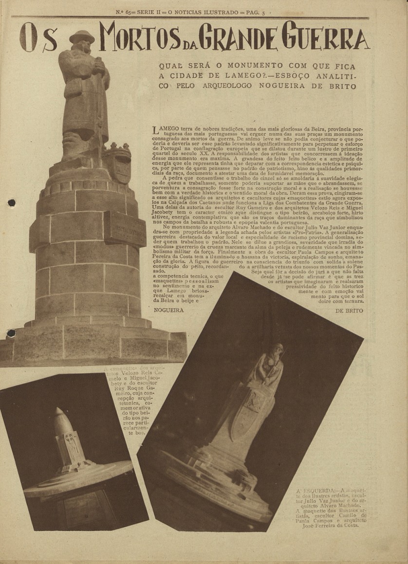 A Estátua do Soldado Desconhecido, em Lamego, foi projectada pelo escultor Júlio Vaz Júnior e pelo arquitecto Álvaro Machado, sendo inaugurada em Setembro de 1932. Na mesma pode ler-se: "Aos mortos da Grande Guerra. Datas gloriosas".