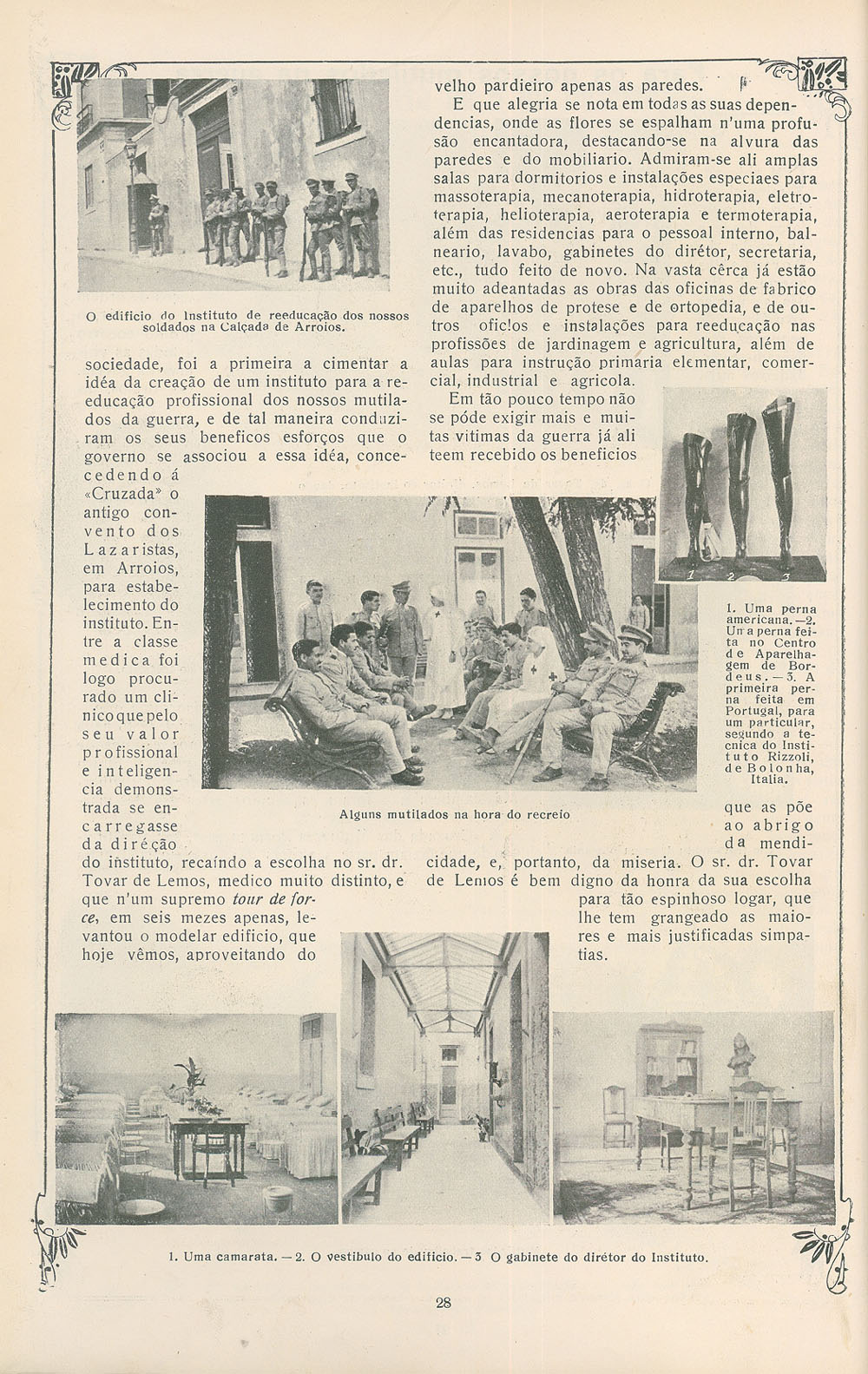 O Instituto Militar de Arroios foi fundado em 11 de Abril de 1917 pela Comissão de Assistência aos Militares Mobilizados, da Cruzada das Mulheres Portuguesas. Regulamentado no mesmo ano e entregue à direcção do capitão-médico Alfredo Tovar de Lemos, o instituto destinava-se a receber, tratar e reeducar profissionalmente os mutilados de guerra, por forma a facilitar a sua reintrodução social e laboral. Concebido como organismo temporário, seria extinto em 1922.
