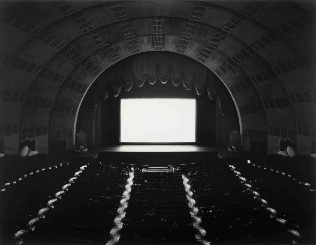 Em 1978, Hiroshi Sugimoto inicia a série Theaters. Colocando a câmara fotográfica num local que permitisse uma visão global de salas de cinema e de drive-ins, o artista executa um registo fotográfico no qual o tempo de exposição coincide com o tempo de projecção do filme. A acumulação de luz da projecção, num tempo prolongado sobre o ecrã, resulta numa imagem em que o ecrã fica totalmente iluminado. Um plano branco, simultaneamente vazio e cheio de imagens, como uma superfície de humores e mortes pressentidas, que só é plana para dissimular, oferecendo-se à imaginação, ao poder virtual de uma figuralidade sem figuras.