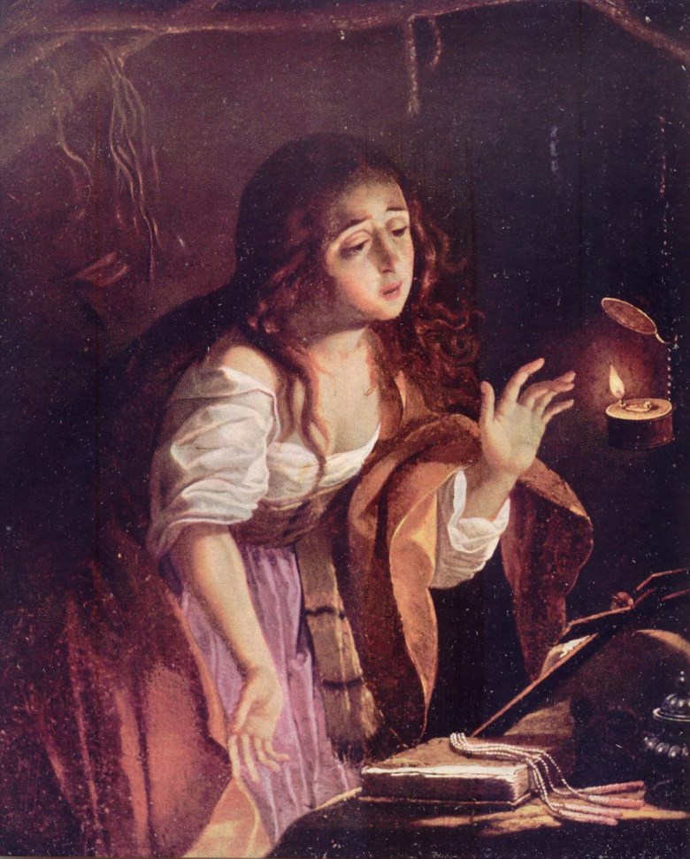 Em Portugal, este esforço de inovação também conheceu fortuna. Por via da sua passagem por Sevilha, o pintor obidense Baltazar Gomes Figueira (1604-1674) aprendeu nos círculos de Francisco Pacheco e de Zurbarán essa apetência de “fazer experiencia de noite à candea, aonde se verà claramente o que he luz, & o que he escuro” (como dizia Filipe Nunes na Arte Poetica, e da Pintura) a fim de saber “donde dá a luz na figura” e “relevar” as formas da realidade tangível. Uma das obras mais surpreendentes desse exercício ocorreu cerca de 1650, quando a filha de Baltazar, Josefa de Ayala e Cabrera (Sevilha, 1630-Óbidos, 1684), à data estudante em Coimbra, pintou a Santa Maria Madalena em êxtase místico que aqui se analisa. Trata-se de um notabilíssimo cobre com iluminação a la candela, onde a figura de Madalena centra um precioso notturno, testemunho do saber digerido sobre as propriedades da luz.