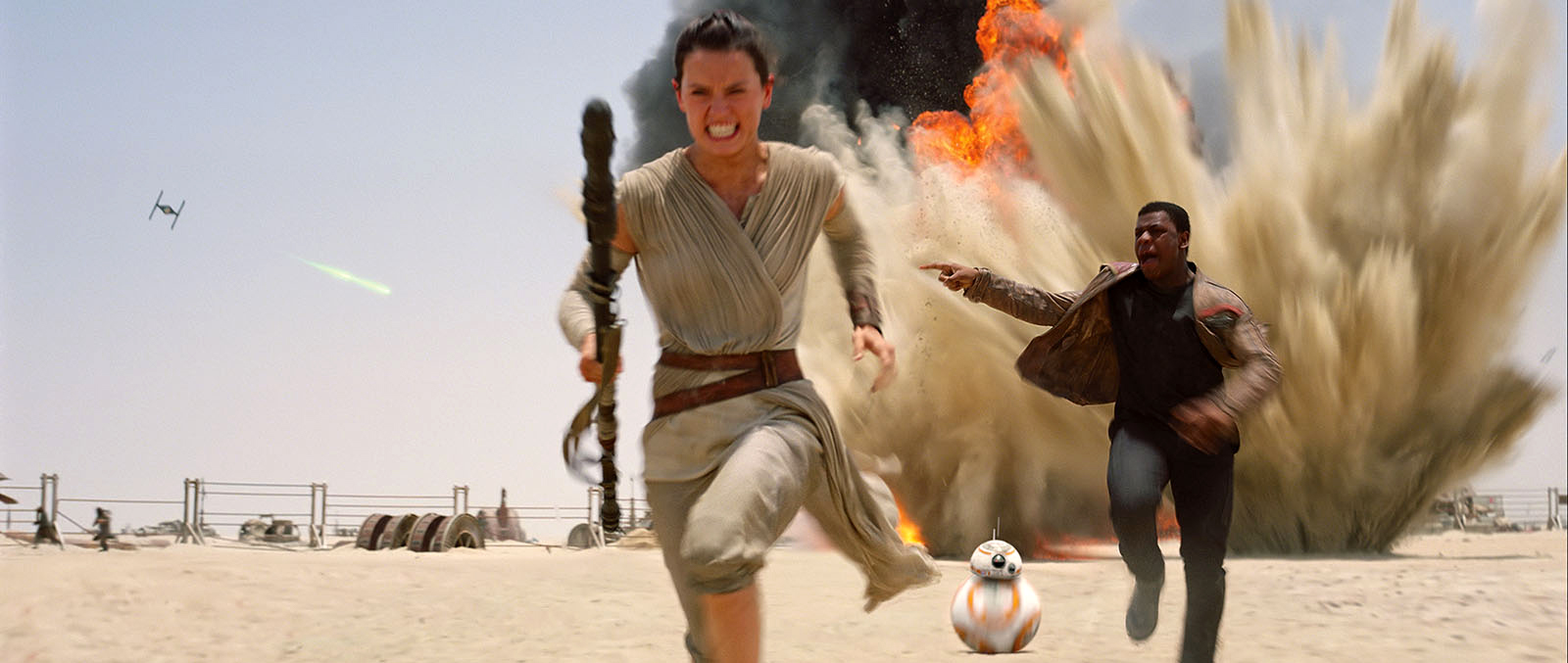 A simplicidade dos valores e universalidade humanística da ópera espacial evoluiu de um para três filmes até 1983 e, daí, para outros três (as prequelas de 1999 a 2005), para tornar Star Wars numa saga familiar em que o espectro edipiano do pai paira no espaço. Trinta anos depois de os eventos de O Regresso de Jedi (1983) e com o regresso do elenco-chave de 1977 - embora com a omnipresente e provocadora ausência de Luke Skywalker dos materiais promocionais -, chega o simultaneamente muito promovido mas enigmático sétimo filme, em que dois jovens heróis, Rey e Finn (ou as futuras estrelas Daisy Ridley e John Boyega), vivem novas aventuras.