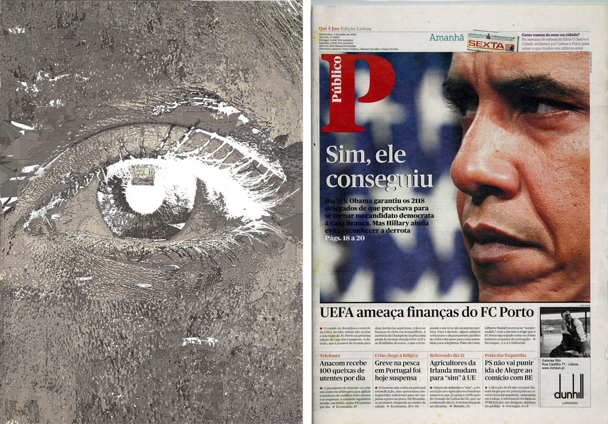 Yes, we can. O slogan que fazia parte da campanha de Barack Obama ganhou vida própria e ainda hoje ecoa. A 4 de Junho de 2008 fez manchetes: Obama conseguira derrotar a outra candidata democrata à corrida para a Casa Branca, Hillary Clinton. No dia seguinte, lia-se na capa do PÚBLICO — uma das seleccionadas pelo artista Alexandre Farto (mais conhecido como Vhils) para integrar a peça Olhar, que celebra os 25 anos do jornal: “Sim, ele conseguiu.” Cinco meses depois, conseguiria um feito ainda maior: ser eleito o primeiro Presidente negro da história dos Estados Unidos.