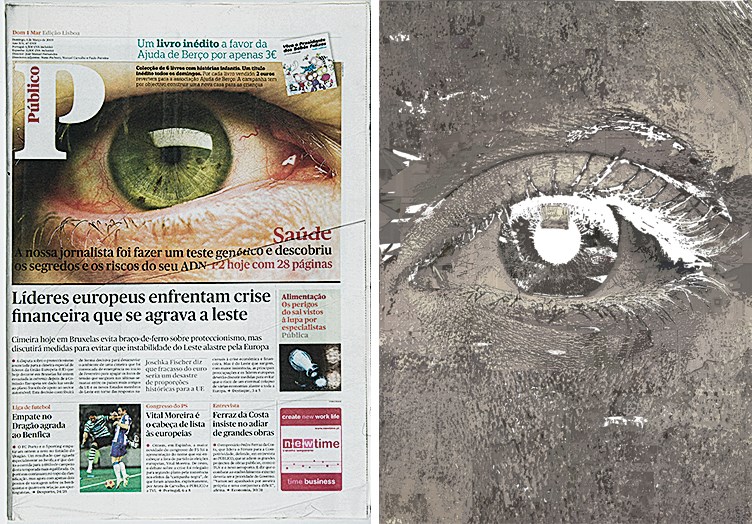 Encomendar uma análise ao seu próprio ADN para a seguir descrever os pormenores dessa “viagem” genética muito pessoal nas páginas do jornal (no suplemento P2), do cuspo de saliva inicial à recepção e interpretação dos resultados. Um exercício pouco frequente que levou a “nossa jornalista”, como titula a capa de 1 de Março de 2009, a revelar as suas predisposições genéticas perante doenças graves, bem como as suas origens ancestrais, inscritas nos genes e transmitidas de geração em geração. Esta primeira página foi uma das seleccionadas por Vhils (Alexandre Farto) para montar a sua peça Olhar.
