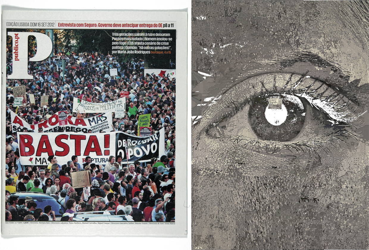 A 15 de Setembro de 2012, a sigla TSU levou Portugal para a rua em protesto com o lema “Que se lixe a troika! Queremos as nossas vidas!”. Analisavam então os comentadores políticos e sociais que era a maior manifestação de que havia memória em Portugal desde o 25 de Abril. Recorde-se que as mexidas na Taxa Social Única previam redução para as empresas de 23,75% para 18% e aumento para os trabalhadores de 11% para 18%. Curiosamente, o tema da TSU voltou recentemente a ser notícia mas em moldes muito diferentes do que pretendia na altura o então ministro Vítor Gaspar. O PÚBLICO encheu a primeira página com uma fotografia dos protestos que movimentaram diferentes gerações e esta é uma das capas seleccionadas por Alexandre Farto para compôr a peça Olhar, uma obra que ficará completa no final deste mês de Agosto.