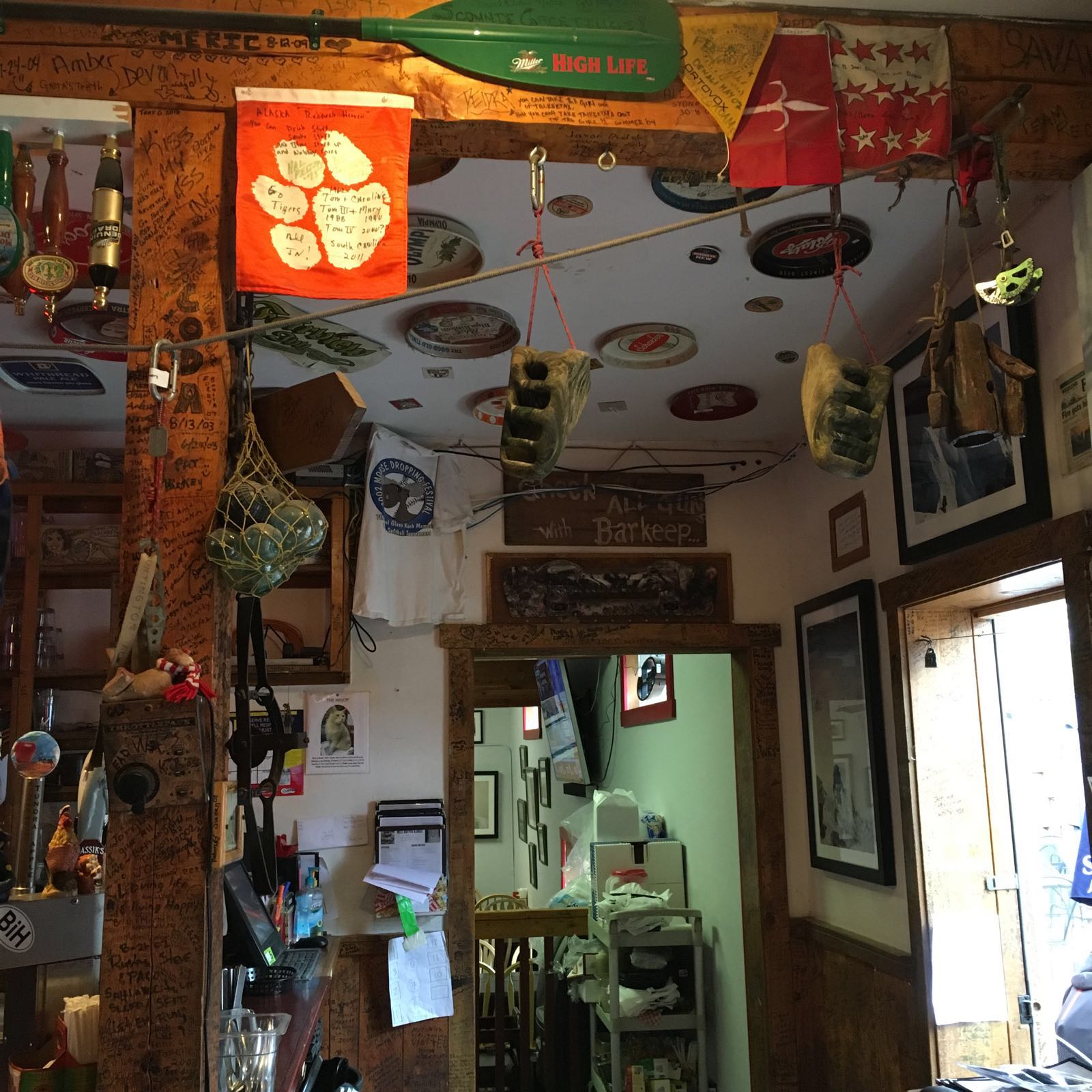 O ruído de motores no céu anuncia a chegada a Talkeetna. A chuva deu tréguas e há gente na rua junto ao aglomerado de casas de madeira num cruzamento de estradas e de três rios, com um aeródromo. Há também letreiros por toda a parte a anunciar quase tudo, mas há sobretudo lojas de souvenirs e bares. Além disso, uma mercearia que dá para outro bar com as paredes cobertas de frases escritas a marcador. Quem quiser escreve, se ainda houver espaço. Um grupo de rapazes e raparigas bebe cerveja local ao balcão. Junto ao tecto, um televisor está ligado num canal de notícias. Ted Cruz, um dos candidatos do Partido Republicano, acaba de anunciar que se retira da corrida. Donald Trump vai mais só à Convenção agendada para Julho. Ninguém se move para comentar. Não há uma reacção. As cervejas e a conversa continuam enquanto na rua quatro meninas passam num carro plástico colorido. Vão sozinhas na estrada de asfalto, com os pais vigilantes, ao fundo. É o centro daquela terra. Uma estalagem exibe a placa “Vende-se” e ao lado uma rapariga com o cabelo às cores levanta o auscultador da cabine de telefone público enquanto deita uma moeda. “Alguém é de Talkeetna?”, apetece perguntar. E seguem-se histórias de gente que se refugiou ali durante anos, sobretudo do preconceito. Homossexuais, ex-presidiários. “Hoje já não é assim”, diz o homem que serve cervejas. “São miúdos à procura de aventura, turistas que param e depois vão.”