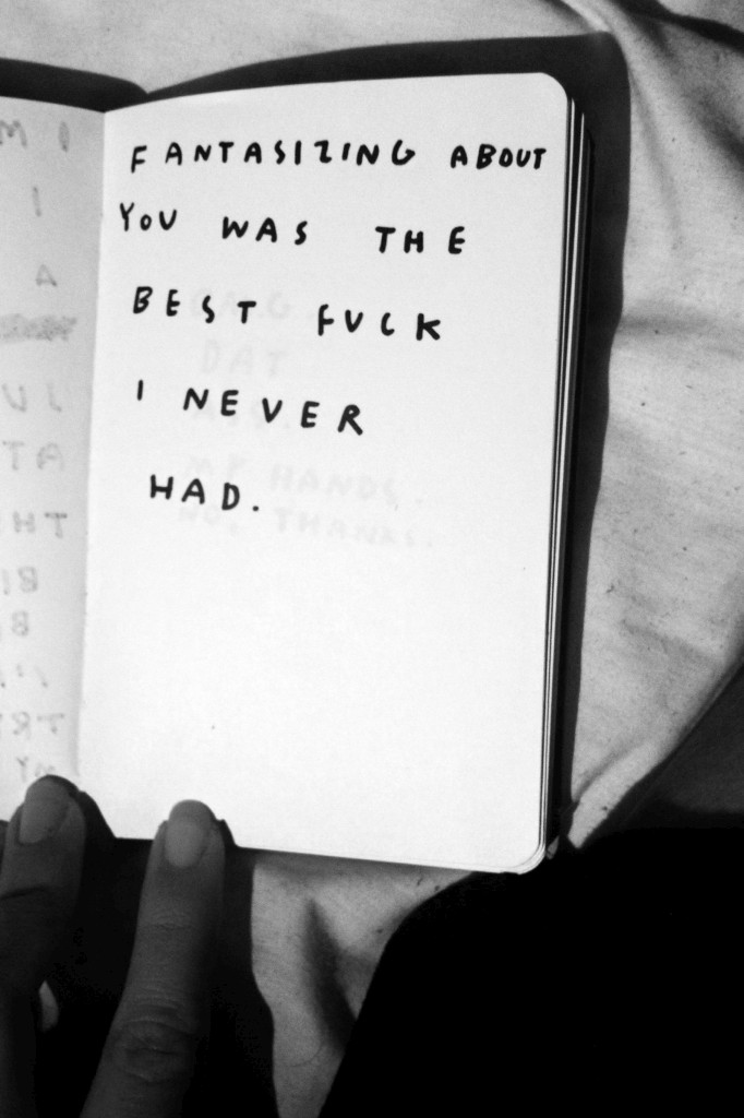 Talvez por causa dessa necessidade de quebrar rotinas, não saiba responder ao certo como é que trabalha. “Acho que passados três anos, ainda não sei muito bem qual é o meu processo de trabalho, acho que ele não existe mesmo”, explica. “Eu acordo todos os dias e faço o que tenho a fazer, mesmo que não seja trabalho, e depois ao fim do dia sento-me e se tiver uma folha e começar a escrever uma palavra, outras palavras vão começar a surgir.” Se assim não acontecer, a música é uma ajuda. Isso, e uma grande influência também, dada a quantidade de referências no seu trabalho. Ela própria diz numa das suas frases que não é anti-social, gosta mais é de ouvir punk-rock. Se for sozinha, melhor. “Eu não gosto nada da palavra inspiração, parece que estamos a falar de alguma coisa que vem do céu e cai no artista e então o artista sente-se iluminado e começa a fazer coisas. Eu sento-me, penso em coisas e escrevo.”