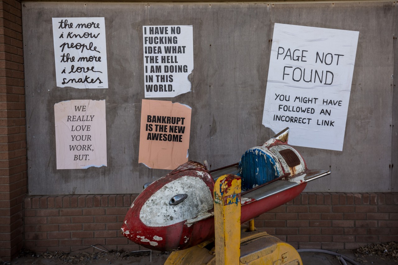 “Eu nunca imaginei chegar aqui ou ter conseguido metade do que já consegui hoje mas ao mesmo tempo também nunca me imaginei a fazer outra coisa”, começa por nos dizer Rita Gomes. “Isso deu-me a força necessária para nunca desistir de fazer isto e provavelmente foi o que me fez chegar onde estou”, continua a designer de formação mas artista de vocação. “Assim que deixei a universidade, comecei a concentrar-me mais em ilustração, da ilustração comecei também a explorar texto, depois comecei a combinar as duas e entretanto agora é mais texto do que outra coisa.”
