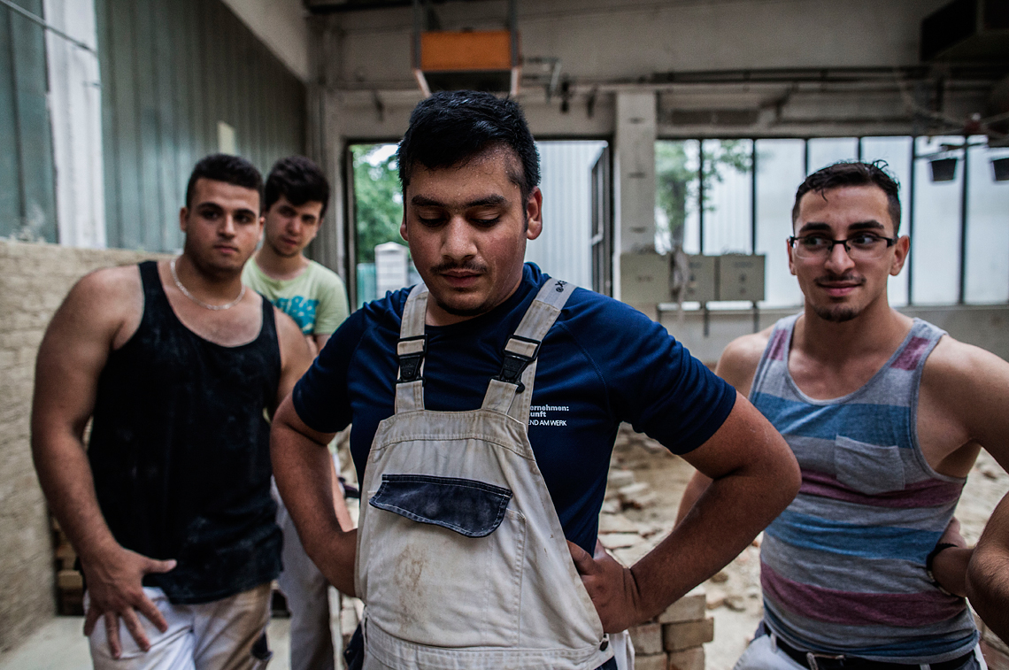É lá que se encontra Onkar Singh, 18 anos. Foi encaminhado para o curso de pedreiro da JaW pelo centro de emprego. Deixou a escola com 15 anos, no final do ensino obrigatório. “Nunca gostei das aulas”, diz, enquanto limpa o suor que lhe escorre pela cara. “Sempre quis trabalhar.” O pai é pedreiro e ele também quer ser. “Está-me no sangue”, justifica-se, tentando evitar o olhar trocista dos colegas que o rodeiam. Não fala muito, mas pouco a pouco vai-se entusiasmando e conta que, há umas semanas, ajudou a erguer uma réplica do Taj Mahal na zona do armazém onde nos encontramos e onde normalmente decorrem as aulas práticas. O formador, Andreas Grosse, um alemão com perto de 60 anos, tenta desafiar os alunos com projectos interessantes. É a forma de os cativar para uma profissão que nem todos querem, diz.