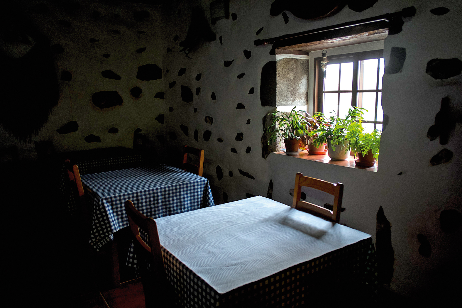 “Bom dia, sejam bem-vindos”, diz-nos agora Teotónia, a cara-metade da Cuada, que, acompanhada pela filha, ultima os preparativos da maior casa da aldeia, onde há seis quartos e também sala para pequenos-almoços. Tal como por todas as casas, debruadas a pequenos detalhes íntimos e familiares, também por aqui se vêem utensílios de outras épocas e quadros de exímios bordados. “Muitas são coisas que já tinha, outras vou adquirindo, não tenho formação nenhuma em decoração nem nada disso, mas vou vendo as coisas e vou por intuição”, confessa Teotónia, contando que antes fazia “muitos crochézinhos” mas agora já não. “Estes vieram do Pico, de onde é o meu marido, foram oferecidos pela minha sogra, são lindos, obras de arte”. E são. “Isto tudo é um trabalho de pormenores, assim é que dá gosto”, sorri. É também tudo isto que retira a carga Disney ques sempre paira sobre um projecto assim.