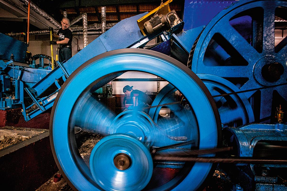 “Parece que estamos em Cuba”, grita alguém, por entre o barulho. Mas estamos na Madeira e em Abril e Maio os engenhos de cana-de-açúcar estão em laboração permanente, 24 horas por dia. É o período de apanha da cana e da sua transformação em aguardente (ou rum) e mel de cana. Estão já muito distantes os tempos em que a economia da ilha se baseava no chamado “ouro branco” — antes de a cana-de-açúcar, trazida originalmente da Ásia Oriental, se espalhar pelo imenso Brasil, levada pelos portugueses. Foi a partir daí que, inevitavelmente, a produção de açúcar da Madeira perdeu toda a capacidade competitiva. Mas esse mundo não desapareceu completamente.
