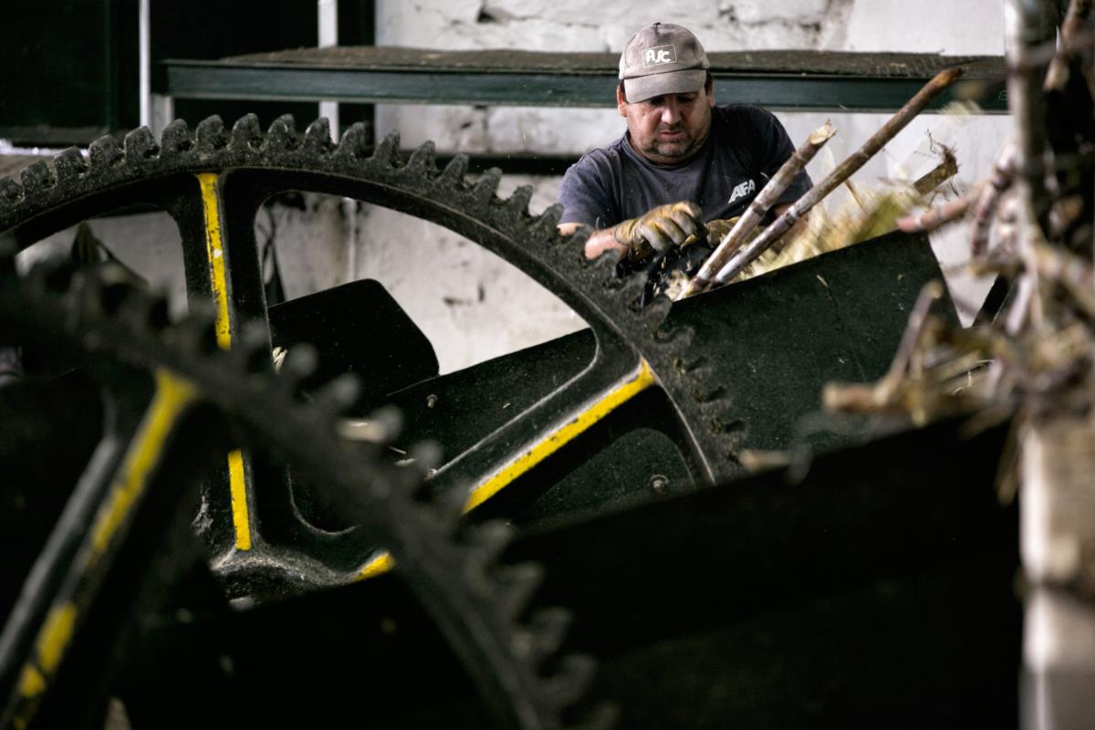 É fácil perceber que estamos num engenho de cana-de-açúcar em plena laboração. Primeiro vemos as carrinhas, que transbordam, e os homens, empoleirados sobre a carga, que a empurram para o interior do engenho. Logo de seguida apercebemo-nos da cadência ritmada das máquinas a partir e a moer a cana que, um pouco mais à frente, sai dividida em duas partes: a garapa, sumo de cor clara e turvo, e a palha.