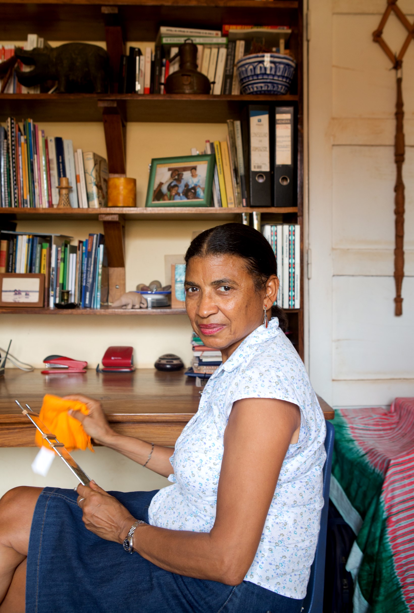 Sentamo-nos no sofá ao lado de uma mesa redonda onde estão espalhadas fotografias da família. Da cozinha vem o cheiro do almoço a abrir o apetite. Podíamos, de facto, estar numa casa portuguesa. Na verdade, Deolinda Mendes passou muitos anos fora: viveu nos Estados Unidos, onde estudou Sociologia, viveu também em Portugal e regressou definitivamente à Guiné-Bissau há nove anos. “Os valores do colono eram os ocidentais e quem vai socializar a criança vai socializar dentro desses valores. Lembro-me de que o meu pai nunca falou crioulo, para ele era o expoente máximo. Agora acho que isso era o extremo da assimilação.”
