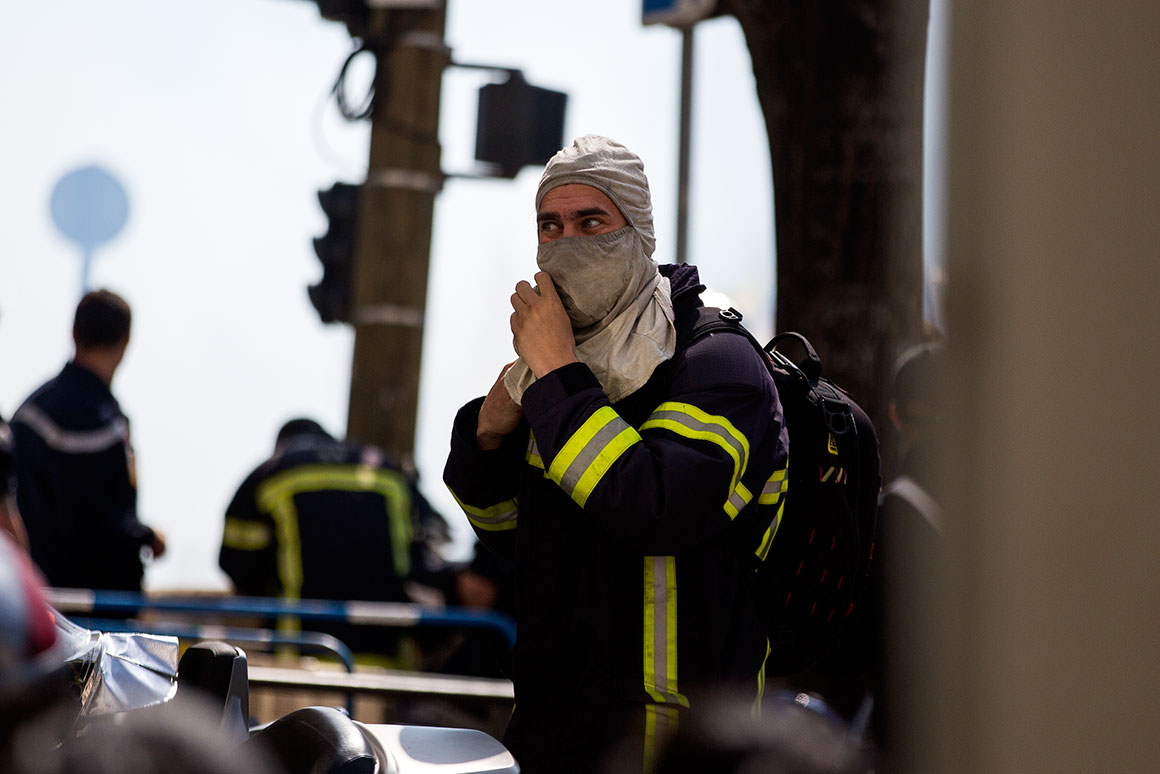 Bombeiros contra polícias, petardos a estourar ciclicamente, um avanço que levou a gás lacrimogéneo. Bombeiros de passa-montanhas, a ir comprar soro fisiológico à farmácia, a recuar e deixar cair as lágrimas até recuperarem dos efeitos do gás e voltarem para a frente.