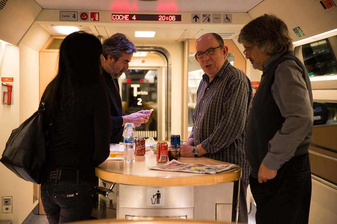 Nota que este TGV em que estamos é óptimo para esta abertura e para ligar as pessoas. “Mas só as que podem”, diz. “Porque esta viagem custa 90 euros, só de ida. Ida e volta, 180 euros”. Kelly olha para o lado e diz: “Se ouvirem outras pessoas, ouvirão visões muito diferentes. Tenho a certeza de que aqueles arquitectos – acho que são arquitectos – terão uma visão diferente”, e ao sair da carruagem bar antecipa-se, dizendo logo ao grupo que duas jornalistas estão a caminho para falar com eles.