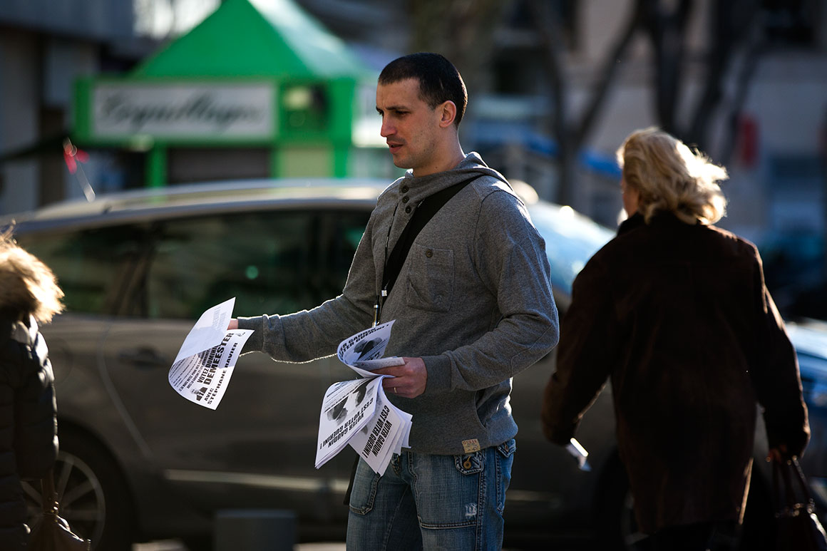 Fala-se muito de política local nesta acção de campanha, mas o segundo tema é a Europa. Uma eleitora interpela Dominique Demeester, físico compacto de muitos anos como gendarme num fato quadrado, cabeça de lista do primeiro sector da cidade. “Concordo que todos os partidos são parecidos, mas a verdade é que quando chegam lá não podem fazer nada por causa da União Europeia – mesmo com a Marine le Pen seria a mesma coisa”, diz uma cidadã interessada nas ideias da FN. “Quem quer que seja, seria manietado pela Europa”, diz. Mas Demeester tem resposta pronta: “Todos os peritos dizem que daqui a dois anos não vai haver já euro, a União Europeia vai-se desintegrar. Não precisa de se preocupar.”