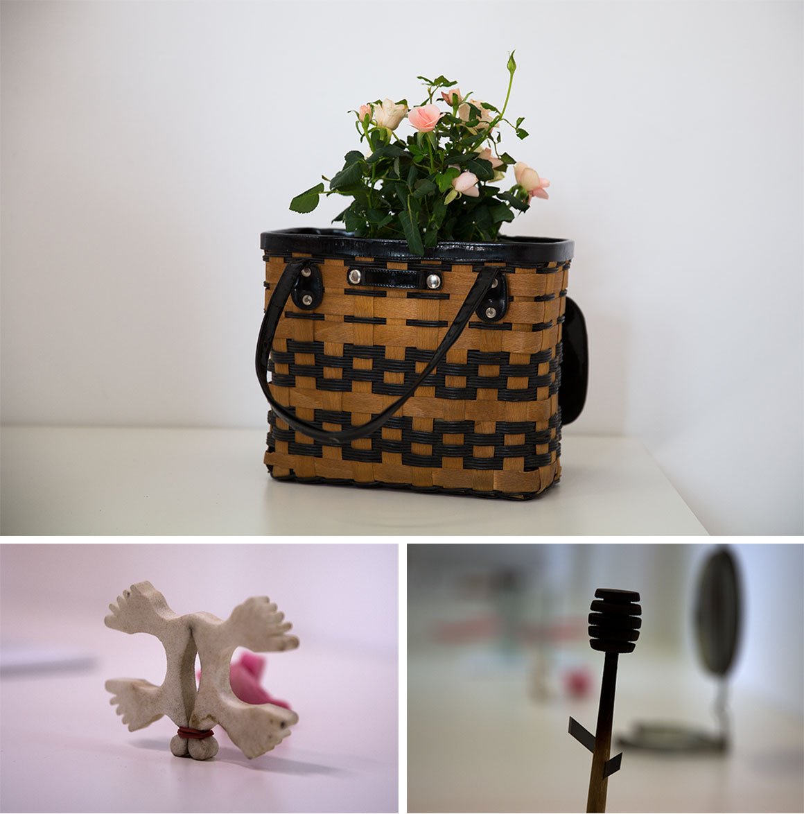 Outro exemplo: é proibido tirar coisas do lixo. Esta lei penaliza os sem-abrigo (dormir ao ar livre também é proibido em algumas zonas de Budapeste) e os ciganos. Daí que os objectos na exposição sejam todos feitos com coisas tiradas do lixo. “É arte proibida”, diz Moyzes. “A ideia era mostrar o absurdo desta lei. Acabei por me focar mais na lei do lixo, mas também tenho um objecto, o cesto, que é uma referência à lei da madeira”, explica.