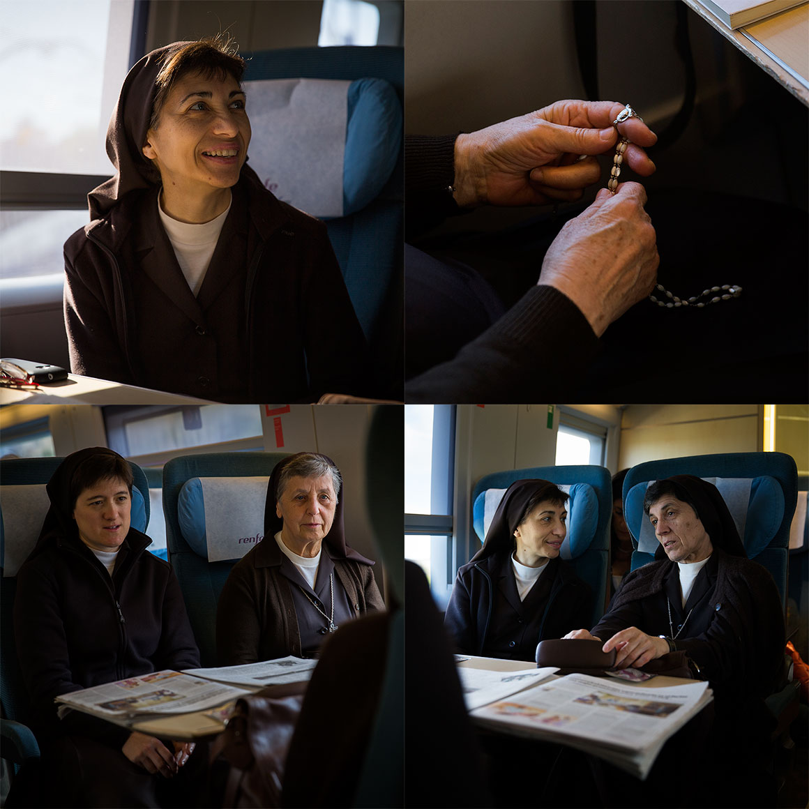 Susana, Paquita, Ascención e Melchiora distinguem-se do resto dos passageiros na carruagem 7 do comboio de alta velocidade de Madrid para Barcelona. São quatro freiras e enquanto não se nota os quase 300 km/h do comboio, é bem visível a sua animação com o encontro de trabalho que acabaram de ter – juntou mil pessoas!, sublinha Paquita – em Madrid.