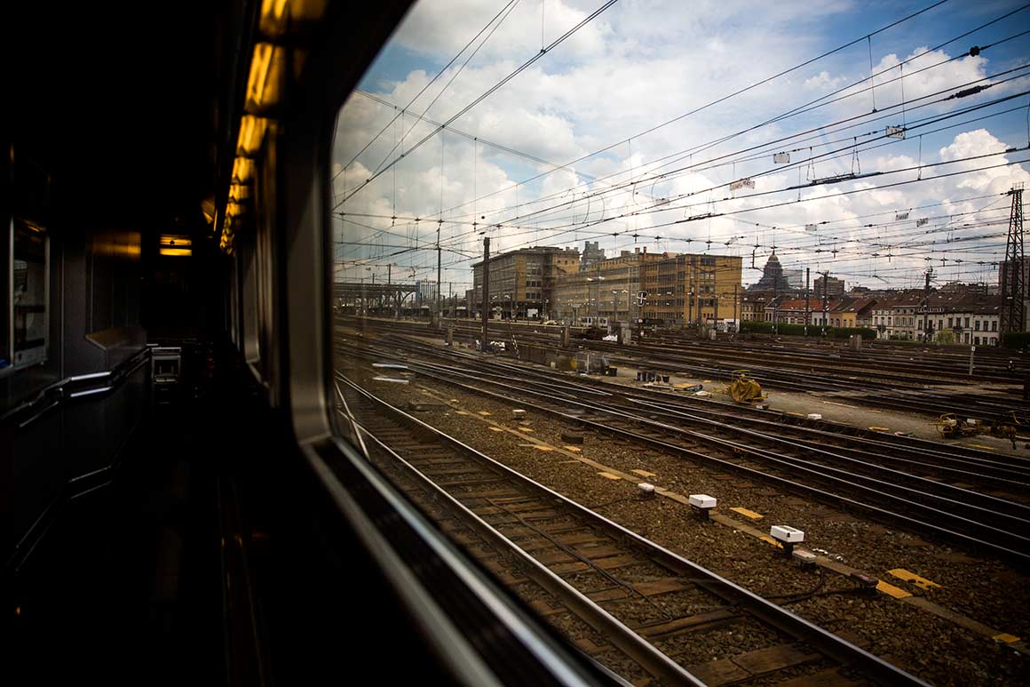 Famílias enchem bancos de migalhas de croissants ou jogam às cartas. Ouve-se o soar de crianças cada vez mais alto, até ao “shhhhh” de um pai ou mãe. Primeiro em francês, depois em inglês, como que em despique. Mas tudo passa depressa: com uma velocidade média de 300 quilómetros por hora, demoramos cerca de duas horas de Londres a Bruxelas.