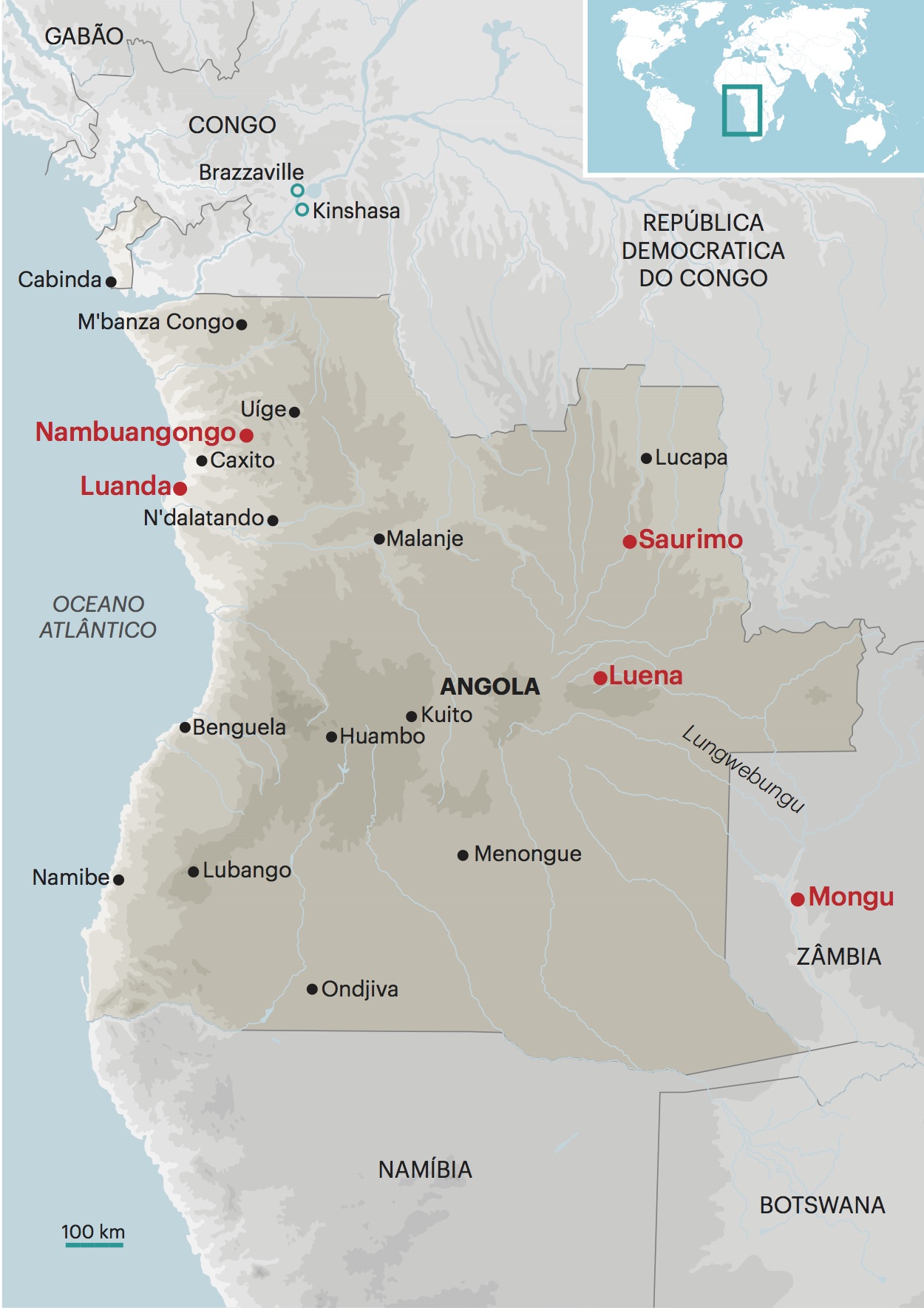 Para se chegar ao bairro onde vive o filho de António, é preciso sair-se da cidade de Luena, das suas avenidas largas com muitas casas coloniais abandonadas. Passa-se depois, à direita, pelo edifício de vidros escuros espelhados que é a sede do MPLA, à esquerda pelo palácio do governador provincial, espreguiçadeiras arrumadas à beira da piscina. Atravessa-se o rio Luena, onde há muitas mulheres a lavar roupa e alguns homens a lavar carros todo-o-terreno.