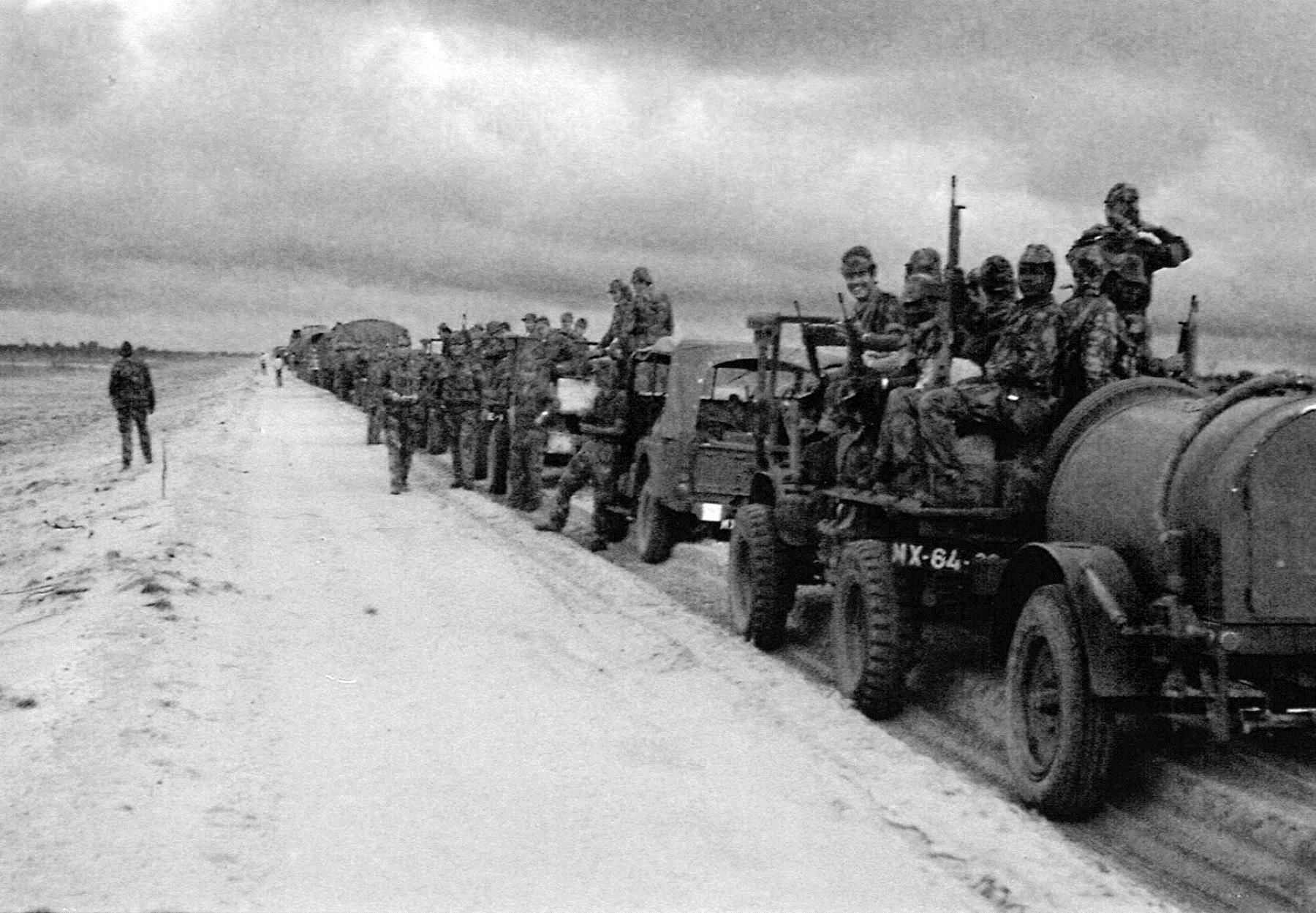 Chegou uma altura em que disseram aos homens da companhia de António, a 1.ª do batalhão 6321, que iam mudar de sítio sem lhes anunciar para onde. "Talvez os alferes e capitães soubessem, a nós não nos diziam." A coluna militar andou como uma comprida lagarta cor verde-tropa que se deslocava vagarosamente, porque uma parte do corpo tinha de esperar pelas restantes. Andaram três dias. Ele ia na penúltima viatura porque era mecânico, no caso de haver avarias.