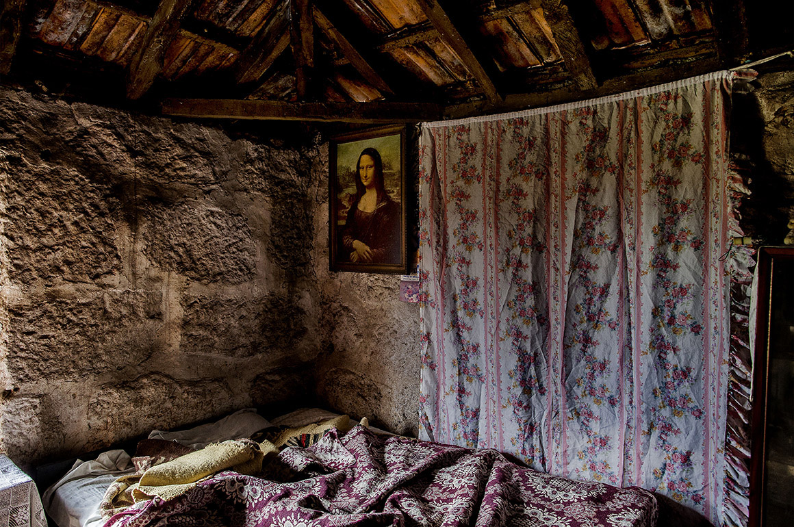Além da fotografia da mãe, nas paredes por revestir só se vê uma cópia de Mona Lisa, a mais notável obra de Leonardo da Vinci, a fazer as vezes de mãe de Jesus. A mãe morreu nova, já lá vão 20 anos. O pai, Albino, dava-lhe mau trato. “Ele batia-lhe e ela, se tivesse uma malga de sopa, tirava à boca para lhe dar. Ela dizia que mais valia a gente fazer bem a quem nos faz mal.”
