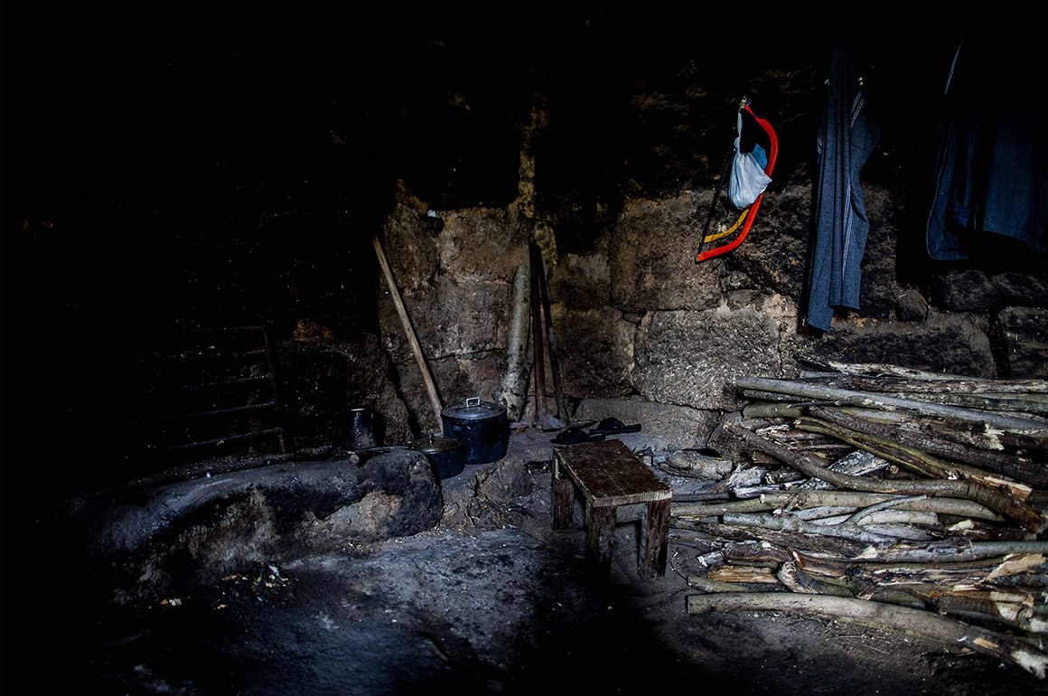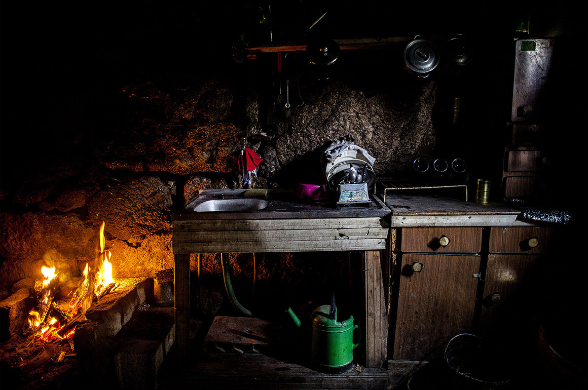 Há uns anos, atreveram-se a deitar uma camada de cimento no chão do quarto. O que lhes custou juntar dinheiro para aquilo! Na cozinha deixaram estar a terra e a pedra irregular. Nunca fizeram casa de banho. Lavam-se num balde grande, de plástico, igual ao que outros usam nas vindimas. Nunca fizeram retrete. “É lá fora, ao ar livre”, diz ela. Não têm água canalizada. “Vamos buscá-la à fonte.”
