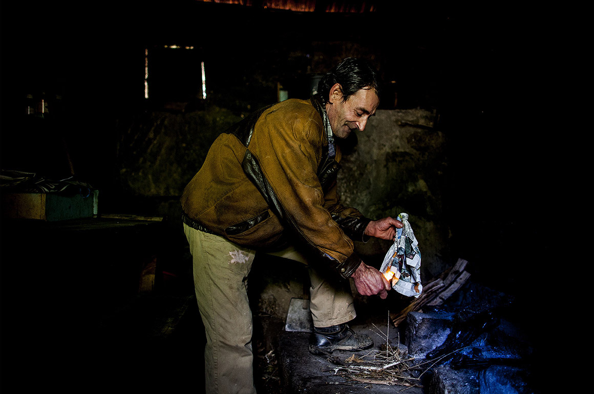 Tem um rádio amarrado ao catre de ferro preto, mas não o liga há 16 dias. Não tem tido dinheiro para as pilhas. Impõe-se um silêncio só interrompido pelo canto do galo da vizinha da frente ou o crepitar da lareira. Às vezes, vai a casa do primo, senta-se a conversar ou a ver “um bocadinho de televisão”. Outras, deita-se ao mesmo tempo que a o galo e as galinhas da vizinha. Tem estado um frio danado. E o tempo custa mais a passar quando não se tem nada que se lhe meta dentro. “A vida não correu como eu queria. A vida não correu como eu queria..”
